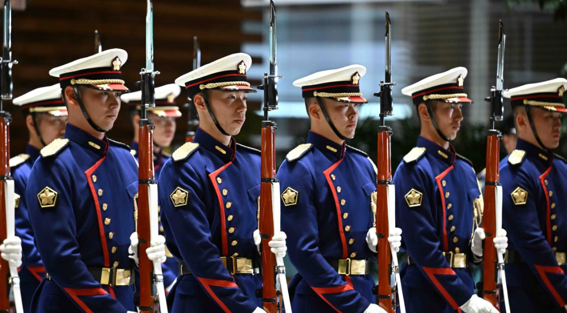 После рапорта начальника почетного караула Касым-Жомарт Токаев и Санаэ Такаичи представили друг другу членов официальных делегаций.