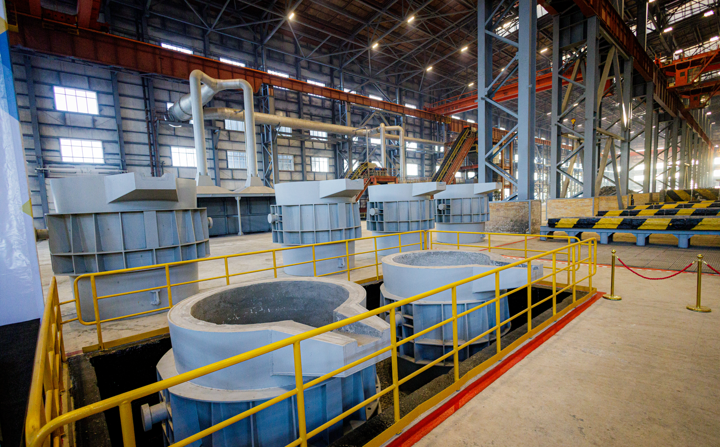 Завод оснащен четырьмя инновационными рудотермическими электропечами мощностью 94,5 МВА каждая, что делает его уникальным объектом в мировой металлургии.