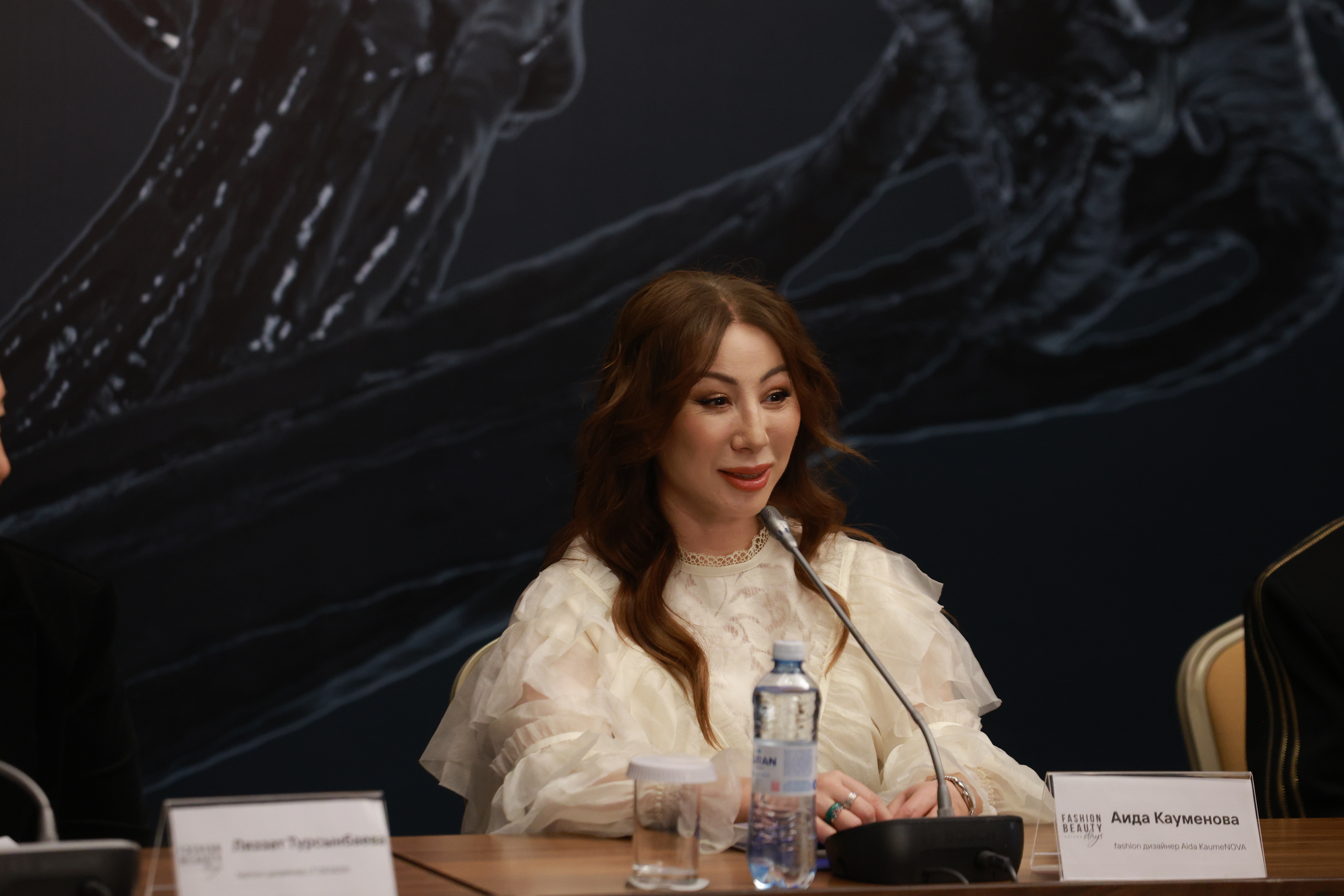 Ведущий казахстанский дизайнер Аида Кауменова, участвовавшая в пресс-конференции, рассказала, что её коллекция вдохновлена образами королевы Франции Марии-Антуанетты и казахской танцовщицы Шары Жиенкуловой.