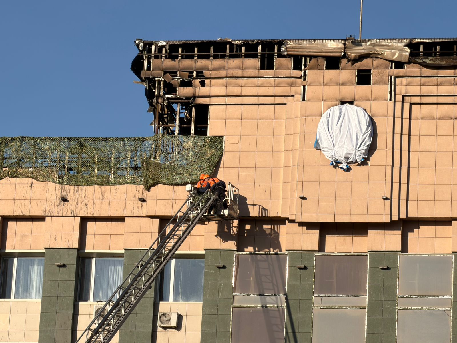 Сотрудники акимата Актюбинской области сегодня перешли на онлайн-режим. Само здание после пожара оцепили, внутрь никого не пускают, сообщает корреспондент Ulysmedia.kz.