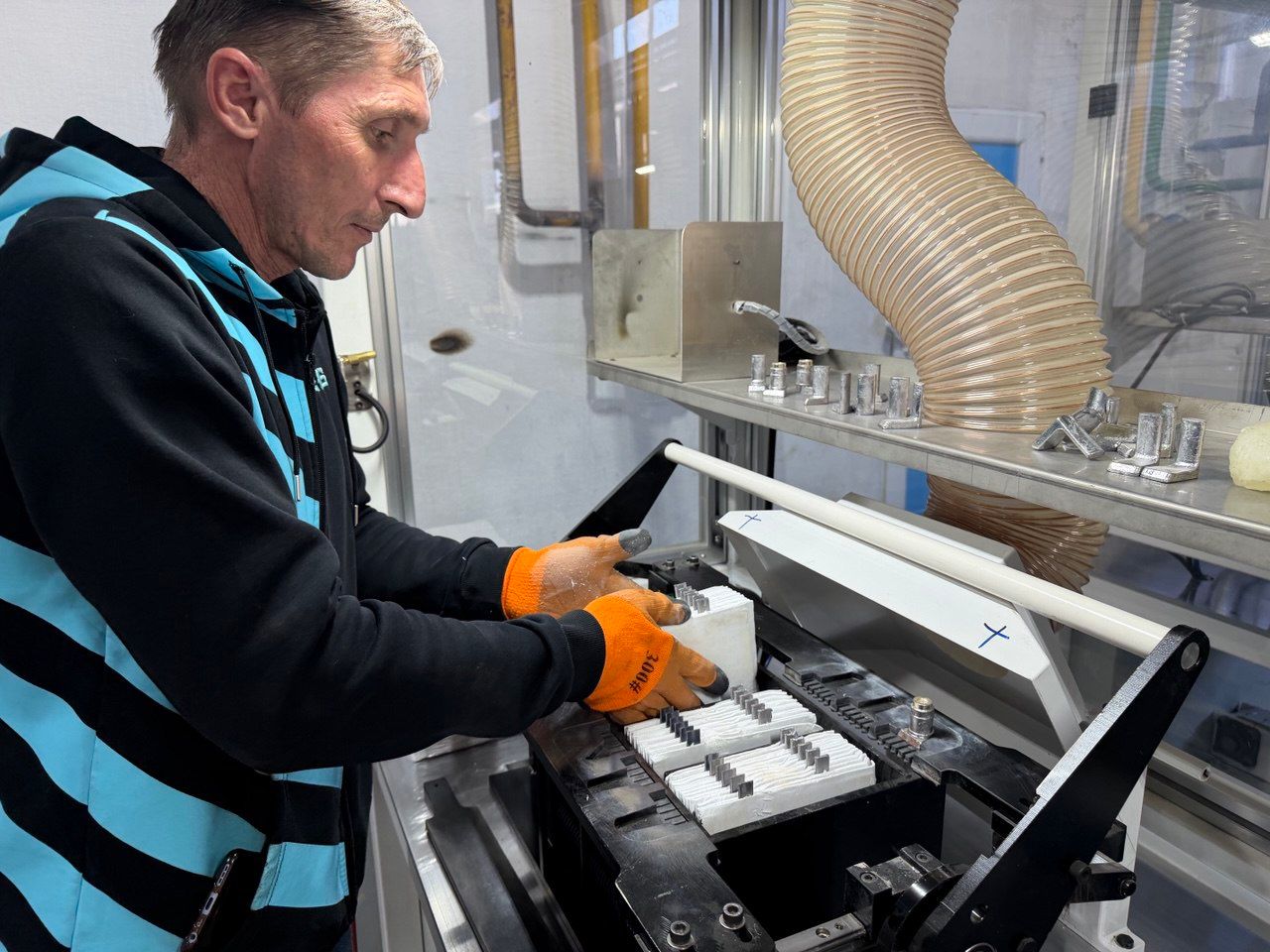 В сборочном цехе Евгений Завгородний группирует пластины, устанавливает сепараторы и формирует блоки. Далее, идет заливка электролита и вот с этого момента аккумулятор начинает «жить». Запускается химическая реакция, ради которой все и делалось.