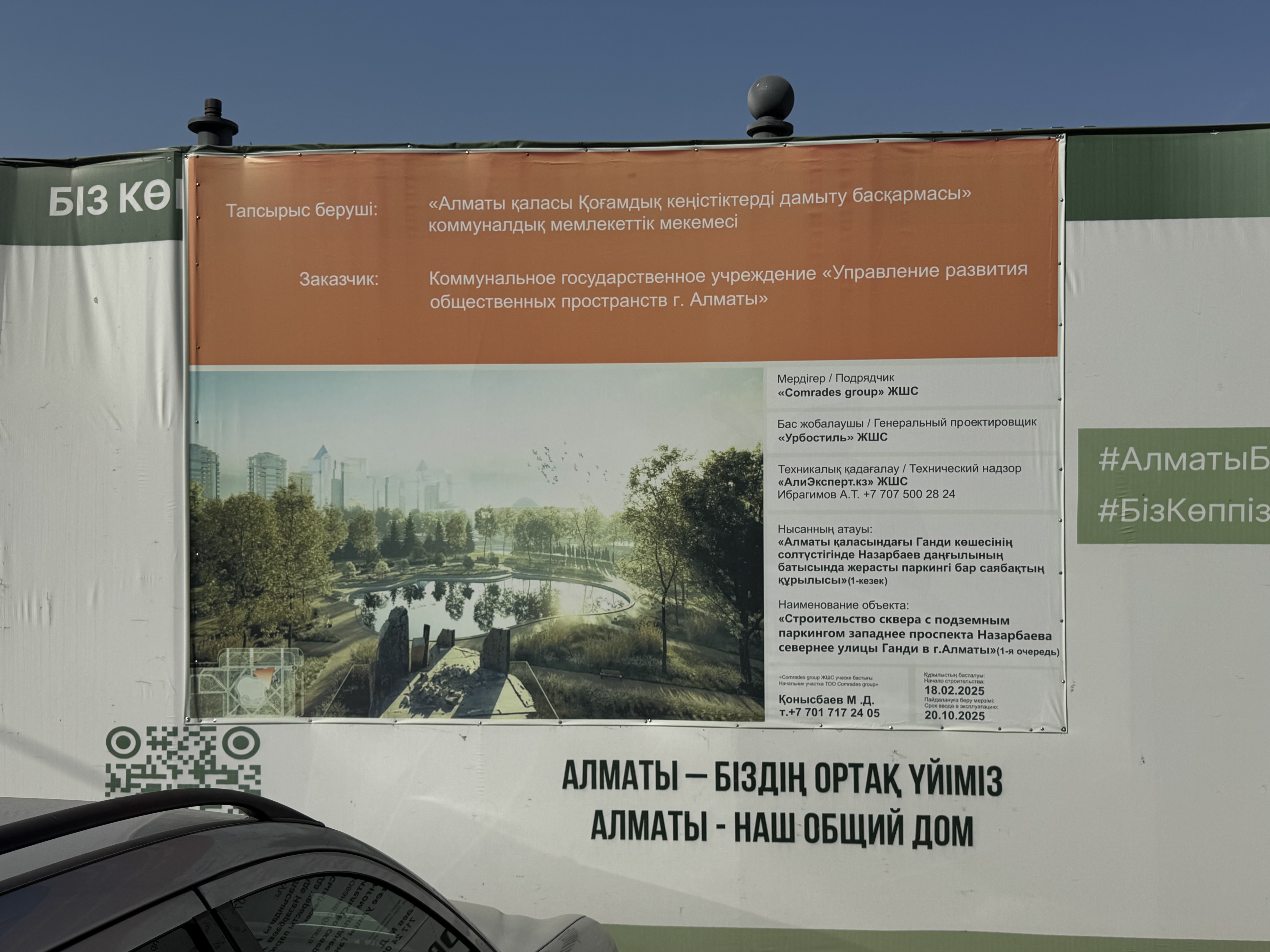 Территория будущего сквера расположена между проспектом им. Назарбаева и улицей Ганди. Вход на стройку был приоткрыт, предположительно для рабочих. Однако попытка журналиста посмотреть, как идут работы на объекте общественной значимости, и сделать несколько репортажных снимков потерпела крах. Попасть за ограждение можно только с письменного разрешения акимата.