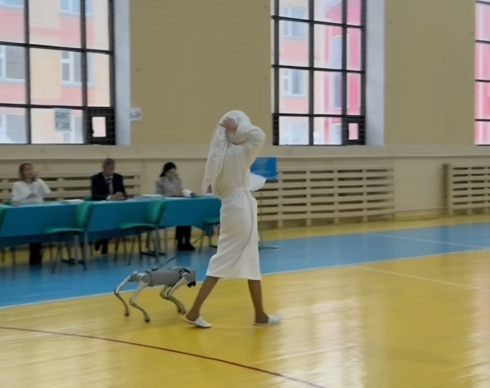Особенно всем запомнилась девушка в махровом халате и роботом-собакой.