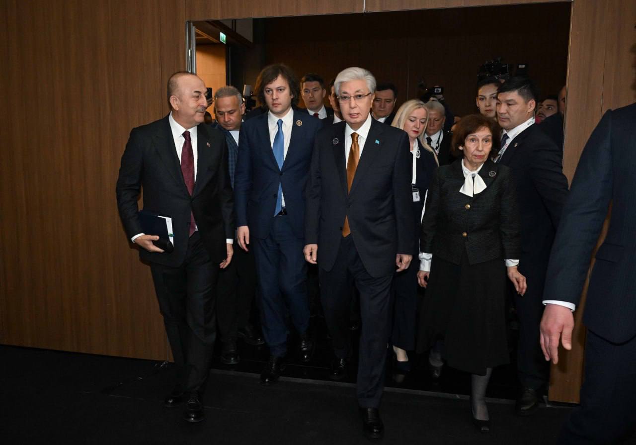 Президент Казахстана Касым-Жомарт Токаев прошел в зал за несколько минут до начала большого собрания. Там уже были премьер-министр Грузии, министр иностранных дел Турции, президент Северной Македонии.