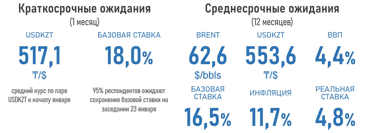 На этом фоне 95% опрошенных аналитиков не ждут, что Нацбанк будет менять базовую ставку в январе. Скорее всего, она сохранится на прежнем уровне в ближайшие месяцы.