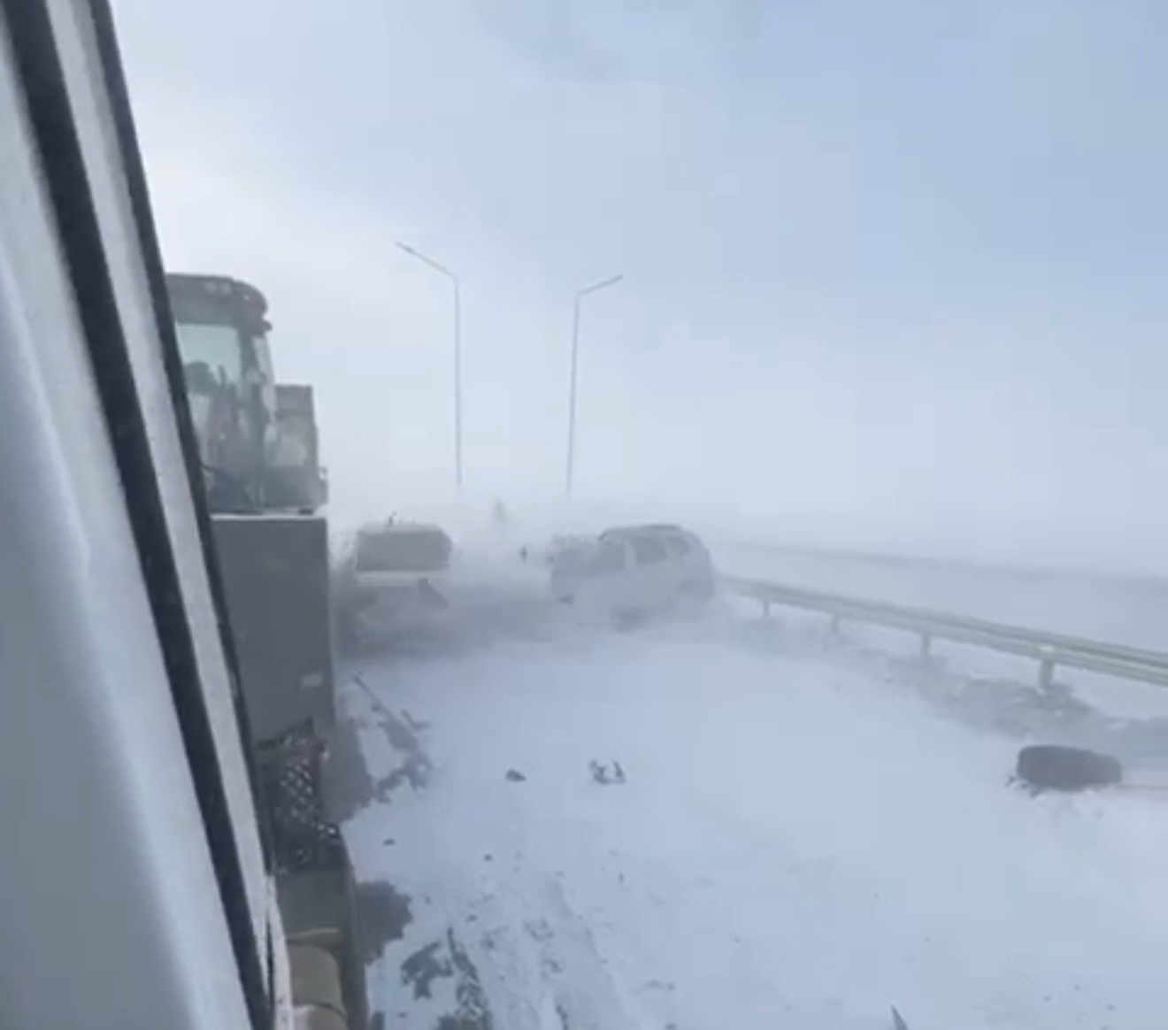 В тот же день ещё одно серьёзное происшествие произошло на трассе Актобе – Астрахань. Из-за сильной метели и практически нулевой видимости дорогу буквально занесло снегом. В этих условиях произошло массовое ДТП с участием 10 транспортных средств. Машины врезались друг в друга одна за другой, образовав плотную цепочку — движение оказалось полностью парализовано. Очевидцы сняли происходящее на видео: водитель грузовика фиксировал ситуацию на камеру, и в кадр попал момент очередного столкновения.