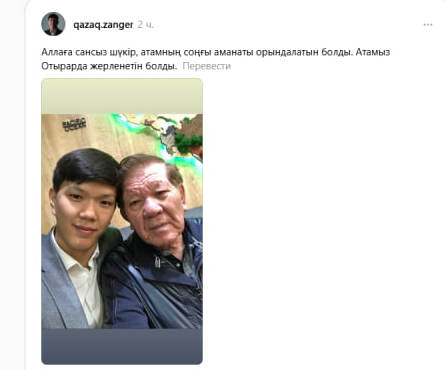 – Последняя воля моего дедушки будет исполнена. Его похоронят в Отраре, – написал в соцсетях Кайырхан Балгабеков.