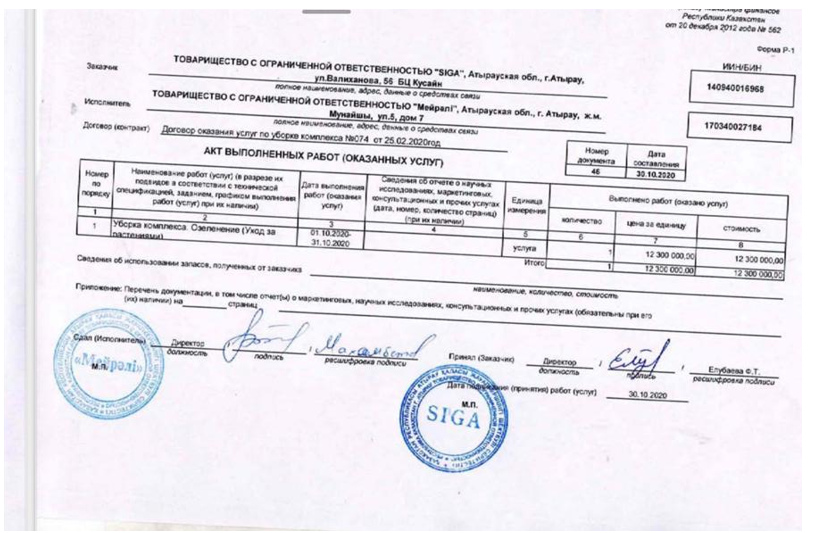 Более того, как отмечается в аналитических справках, по ключевым контрагентам, указанным в этих актах (например, таким как ТОО «SIGA», ТОО «ORKEN LOGISTICS»), в электронной базе Управления государственных доходов (УГД) отсутствовали счет-фактуры. При этом с 2019 года все поставщики, являющиеся плательщиками НДС, обязаны выставлять их исключительно в электронном виде через специальный портал. Получается любопытная коллизия: документы, формально подтверждающие опыт, есть, а легитимных финансовых следов этих операций – нет.