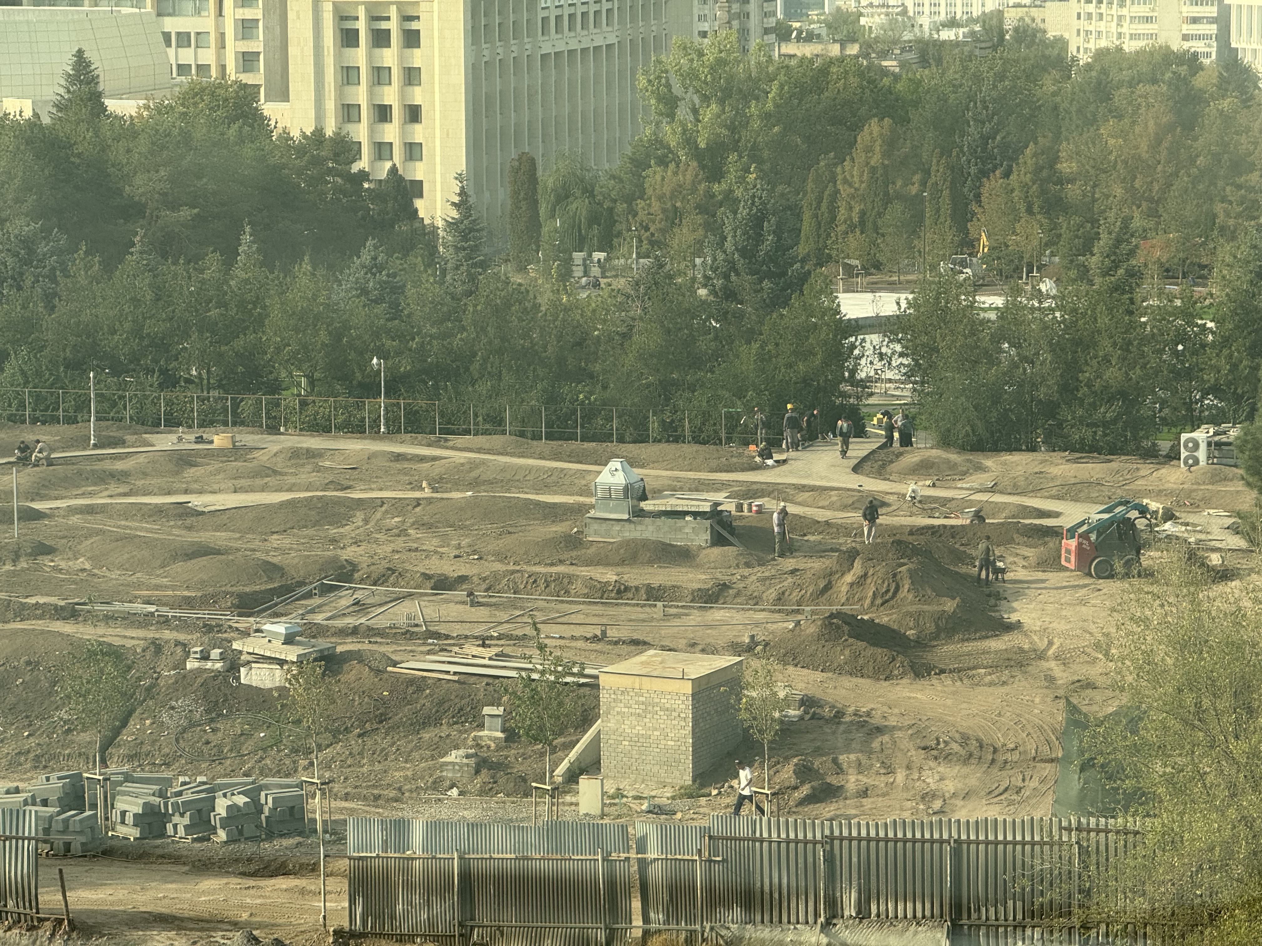 Территория будущего сквера расположена между проспектом им. Назарбаева и улицей Ганди. Вход на стройку был приоткрыт, предположительно для рабочих. Однако попытка журналиста посмотреть, как идут работы на объекте общественной значимости, и сделать несколько репортажных снимков потерпела крах. Попасть за ограждение можно только с письменного разрешения акимата.